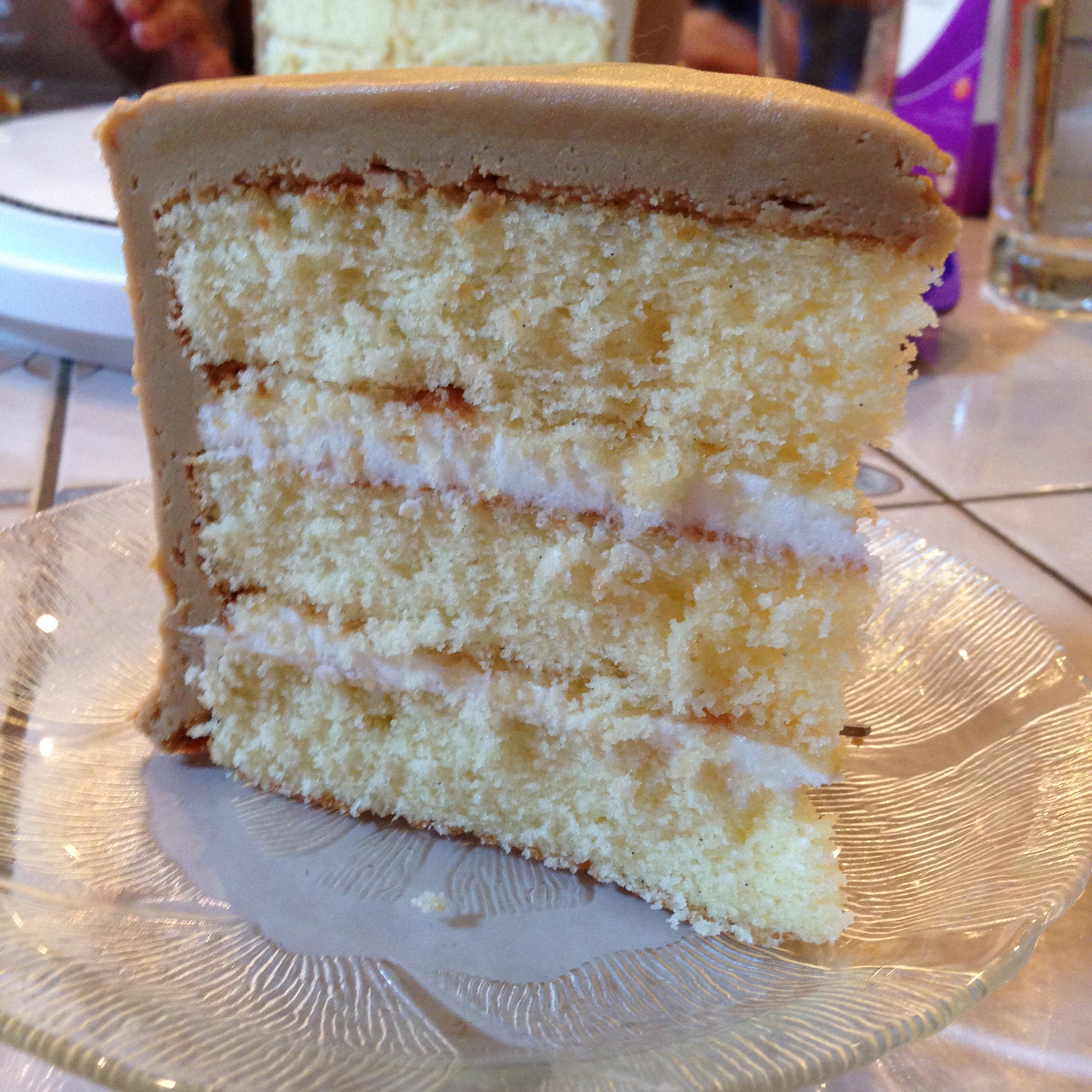 Instead of just making a caramel cake, I thought it would be cool to make a caramel cream cake, like one of these in cake form. So, I found a recipe for Holland Cream, wanting to create a frosting filling that is similar to that inside a donut or a lobster tail. It was good, but not great (maybe it needed more vanilla). I’ll have to tinker a little more with the recipe.